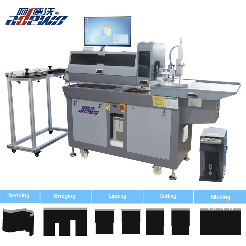 ABM-8105B Суцільні дошки Книги Blade Auto Bender Machine включали функції: згинання, міст, перфорація, відволікання та різання. Товщина підтримується сталевого правила 0,45,0,53,0,71,1,05 мм, висота 8-32 мм. Adewo має досвід роботи з інженерами програмного забезпечення, 3D -дизайнерів, техніків з вирізанням та інженерами -машинобудівниками з 20 років досвіду різання штампу та сучасної технології з ЧПУ, ми віддані з високою точністю, високою ефективністю, високоефективними рішеннями.
